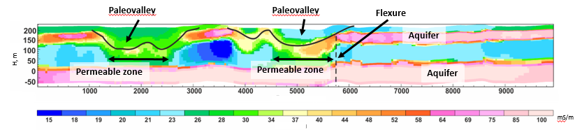 Identification of aquifers and sedimentary features in the conductive section