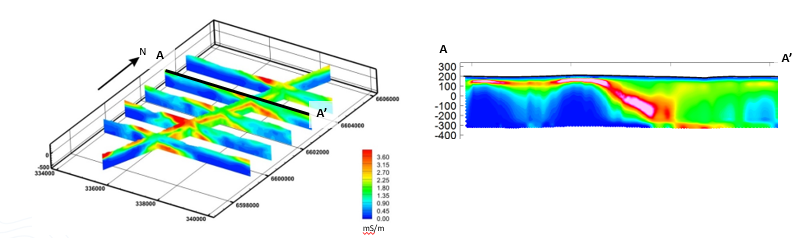 AGP-TEM surveys are used to image the conductivity (resistivity) of the earth in